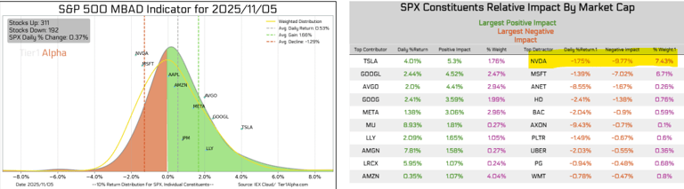 November 5: NVDA down -1.75% → -9.77% negative impact on the S&P